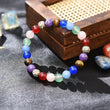 A chakra balancing bracelet, designed to harmonize your energy and compliment any outfit with its vibrant and serene colors. Each of the seven healing crystals aligns with your bodys energy centers, offering both style and balance for your everyday life.