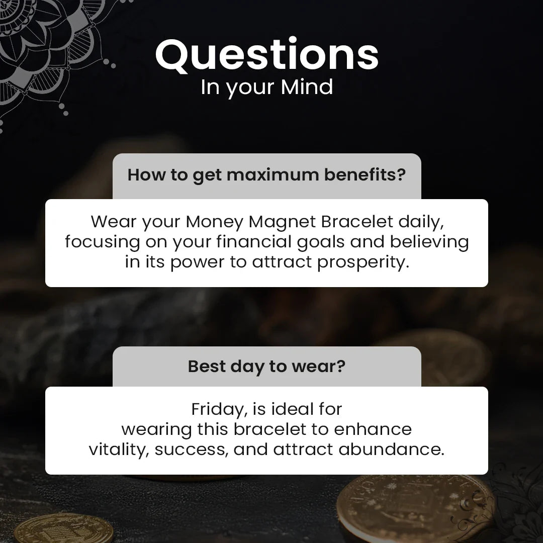 The Money Magnet Bracelet made up of 100% natural and original crystals believed to attract wealth and prosperity. With its stylish design, it combines both elegance and intention. Wear this bracelet to boost financial success, enhance abundance, and bring positive energy into your life, making it a powerful accessory for attracting opportunities.